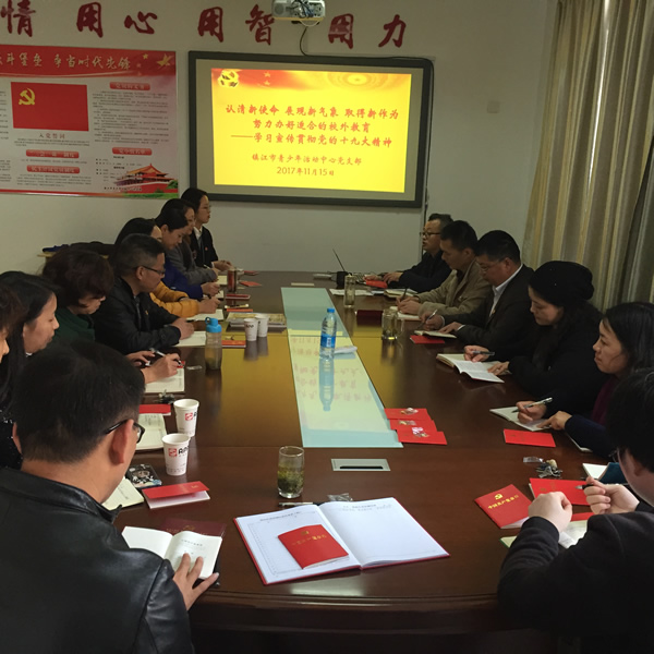 为深入学习宣传贯彻党的十九大精神,11月15日下午,镇江市青少年活动中心党支部召开理论中心组扩大会,主题为“认清新使命,展现新气象,取得新作为,努力办好适合的校外教育——学习宣传贯彻党的十九大精神”,全体党员参加会议。