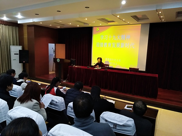 学习会上,党总支书记周晓华指出,党的“十九大”是在我国进入全面建成小康社会决定性阶段召开的一次十分重要的会议。我们要深刻理解和准确把握党的“十九大”报告的框架、主要内容和精神实质,要从“新时代和新方位,新思想和新境界,新使命和新方略,新目标和新举措”等四个方面进行理解;要将学习党的十九大精神与学校实际工作结合起来,学以致用,坚持做到“心中有党”、“心中有责”、“心中有民”、“心中有戒”,用党的“十九大”精神指导学校各项工作稳定发展。