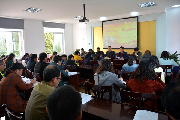 10月27日,江南学校党总支在报告厅召开党总支理论中心组学习会,专题学习党的“十九大”报告精神。党总支委员,各职能部门负责人参加了会议。