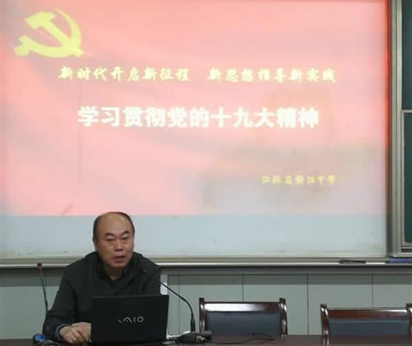 11月14日下午,扬中市兴隆中学党支部组织全体党员开展专题党课学习,学校党支部负责人作了题为“学习十九大,做合格党员”的专题党课。