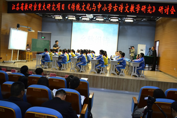 10月26—27日,江苏省教研室重大研究项目《传统文化与中小学古诗文教学研究》课题研讨会在丹阳市实验小学召开。本次研讨的主题是“古诗文年段教学研究”。全省课题组核心成员、基地学校及其它地区小学语文教师共300多人参会。