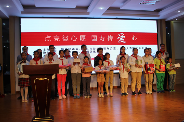 为发扬中华民族扶困济贫的优良传统,广泛动员社会力量帮助广大流动留守儿童实现个人心愿,营造全社会共同关爱困难青少年的良好氛围。近日,由镇江团市委、镇江市希望工程办公室、中国人寿镇江分公司主办,润州团区委、润州区教育局协办,朱方路小学承办的“点亮微心愿 国寿传爱心”公益捐赠活动启动仪式在朱方路小学报告厅举行。