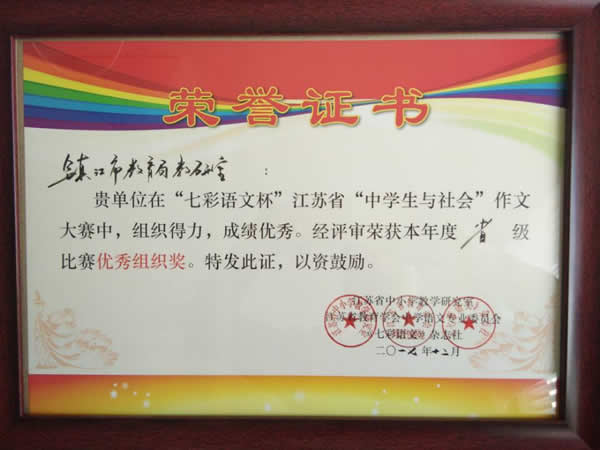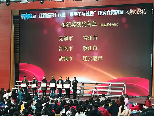 在12月2日结束的“七彩语文杯”江苏省第十六届“中学生与社会”现场作文大赛决赛中,代表镇江市参赛的市江南学校眭心逸同学和扬中市外国语中学耿艺宁同学,勇夺初中组两个特等奖,江苏省扬中高级中学吴欣怡夺得高中组特等奖,镇江市教育局教研室获“优秀组织奖”。 作为江苏省教育厅核准的2017年10项中小学竞赛活动之一,本次大赛参赛学生达1500人(初中生960名,高中生540名),他们都是全省13个大市层层选拔出的作文“高手”。这次镇江市初、高中选手夺得三个特等奖,名次及获得一等奖比例在江苏省十三个地级市中独占鳌头,实现了我市选手自该赛事举办以来的又一次重大突破,这对进一步提升镇江市中学作文教学水平必将产生积极影响。