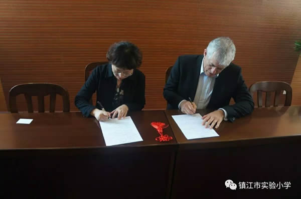 5月17日上午,镇江市实验小学与英国艾克沃斯学校缔结友好学校。市实小李素琴校长与艾克沃斯学校国际交流部主任Michael先生共同签署两校友好结对协议书。